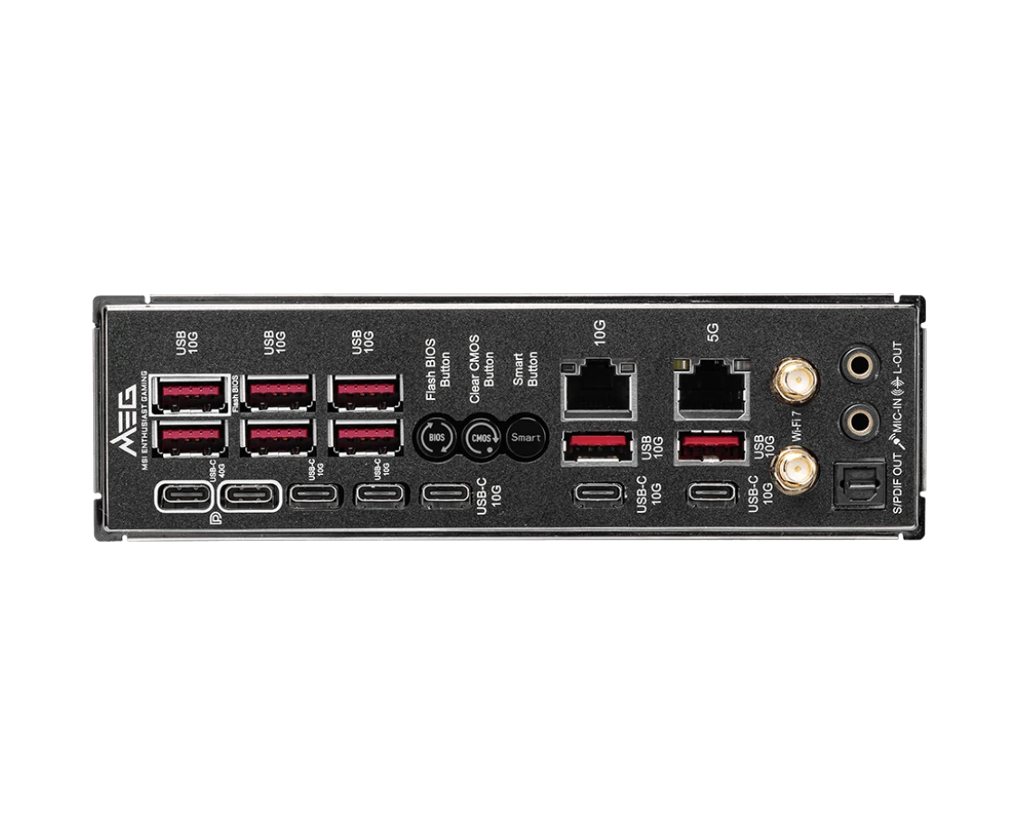 8 x USB 3.2 Gen2, 5 x USB 3.2 Gen2 Type-C, 2 x USB 4 Type-C, 2 x RJ-45, S/PDIF (оптический)