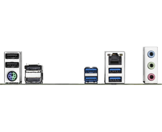 PS/2, 2 x USB 2.0, 4 x USB 3.2 Gen1, HDMI, DisplayPort, RJ-45