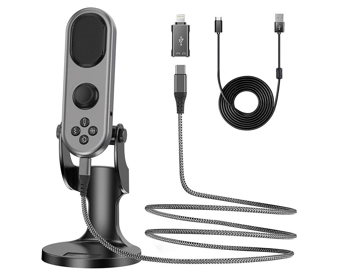 Микрофон универсальный JMARY MC-PW7, кардиоидный, Type-C+Lightning+Jack 3.5mm, 1.8 м, черный