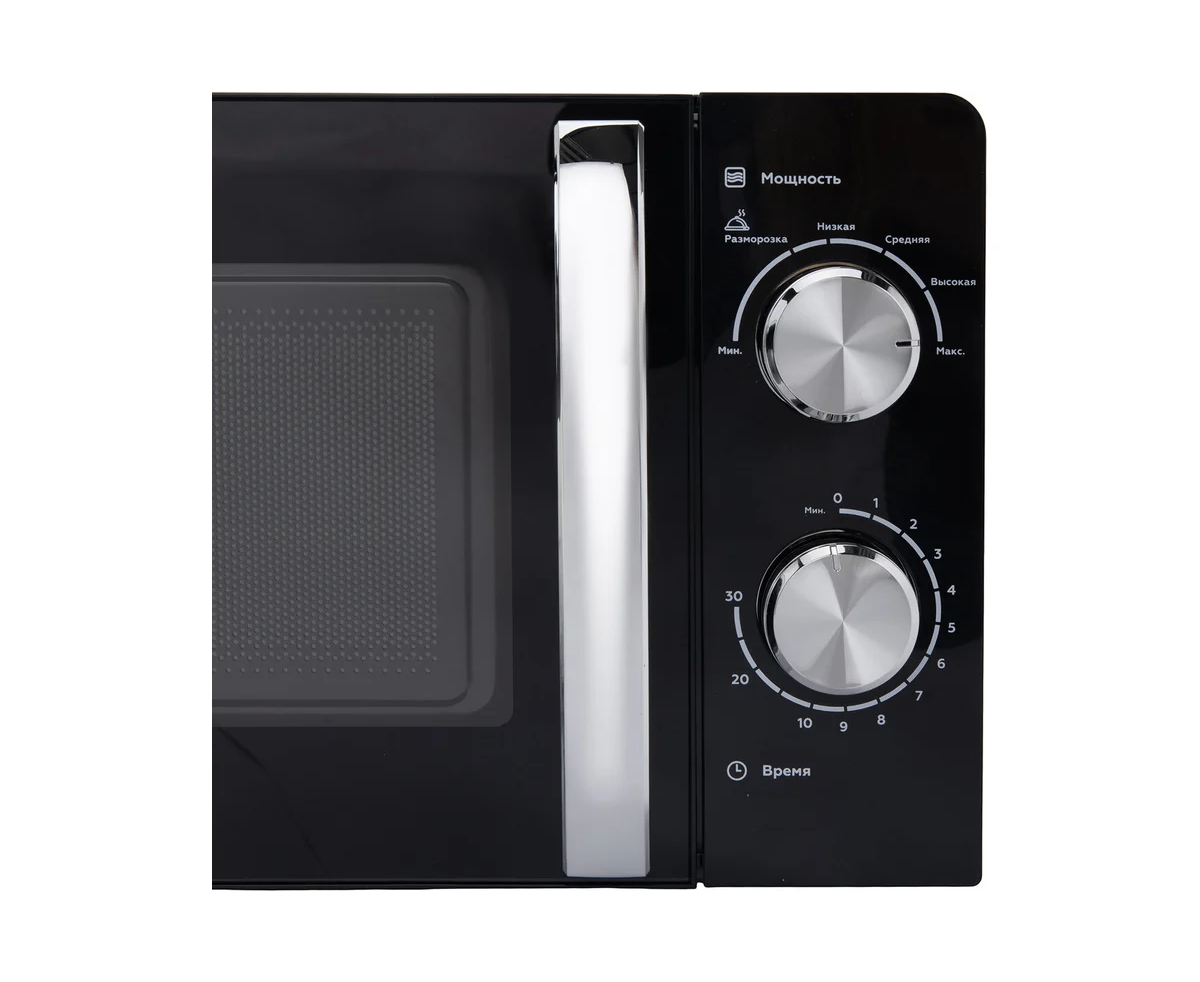 Микроволновая печь SONNEN MW2070BLCR-6MB, 20л, 700Вт, таймер, механическое управление, ручка, черная/хром