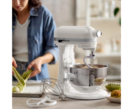 Этот миксер имеет прочный металлический корпус и высококачественные детали, что гарантирует долговечность и надежность. Модель доступна в белом цвете и особенно популярна среди профессионалов и любителей кулинарии, требующих мощного и производительного устройства на кухне.
