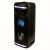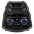 Управление на верхней панели: питание вкл/выкл, подсветка вкл/выкл, следующая запись/радиостанция, предыдущая запись/радиостанция, воспроизведение/пауза, выбор режима (источника звука), приоритет микрофона, выбор предустановок эквалайзера; регуляторы: громкость общая, громкость микрофона, эхо микрофона, низкие частоты (Bass), высокие частоты (Treble)