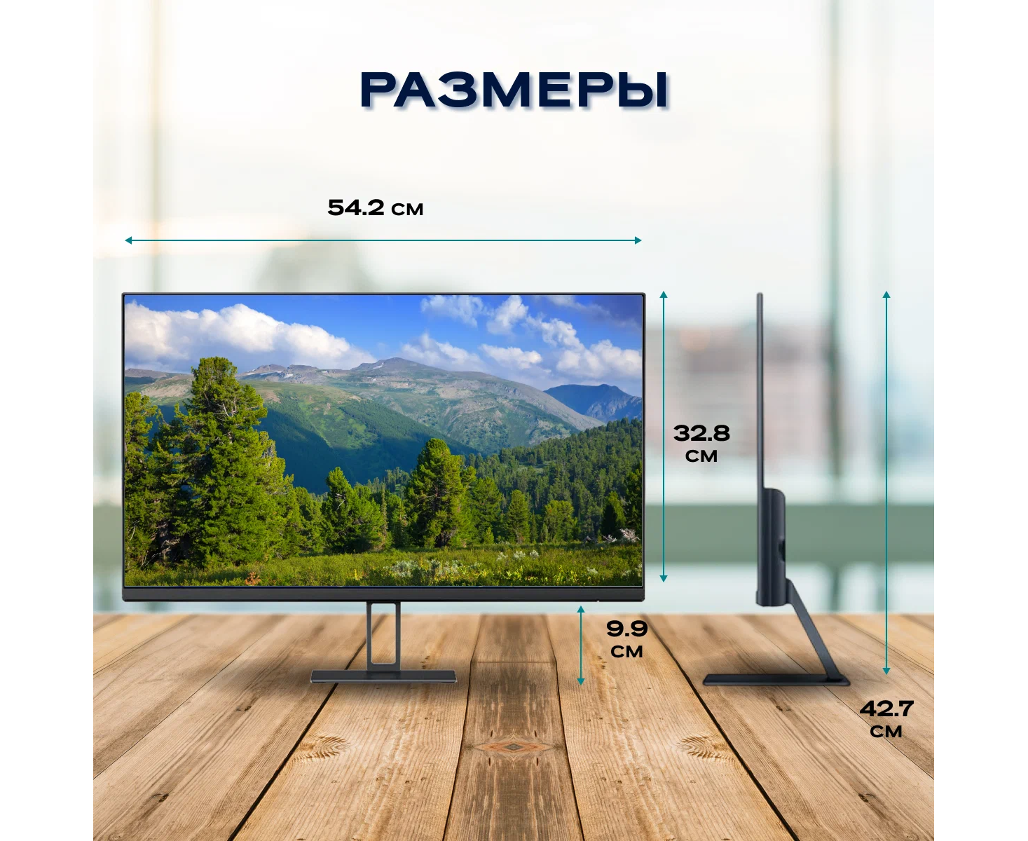 Монитор, подставка, кабель питания, кабель HDMI, переходник 220В