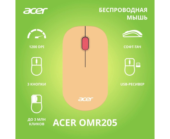 Мышь Acer OMR205 розовый/бежевый оптическая (1200dpi) беспроводная USB для ноутбука (2but)
