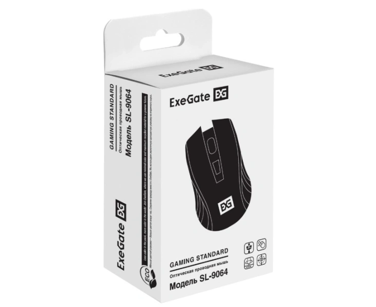 Мышь ExeGate Gaming Standard SL-9064 (EX298899RUS) USB, оптическая, 3600dpi, 6D, 6 кнопок и колесо прокрутки, длина кабеля 1,5м, черная с подсветкой
