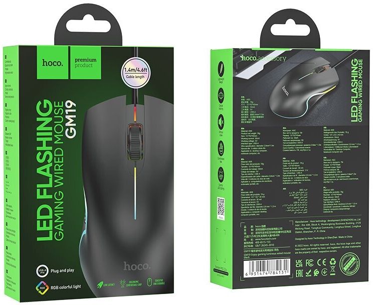 Мышь HOCO GM19 Enjoy gaming luminous wired mouse (black)
