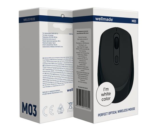 Беспроводная оптическая мышь WELLMADE M03 с разрешением до 1200 dpi и радиусом действия до 10 метров. Совместима с Windows, ChromeOS, Linux. Тип подключения: 2.4ГГц и BT 5.2. Разъем подключения адаптера: USB-А. Разъем для зарядки: Type-C. Размер устройства: 100х37х63мм. Цвет:черный.