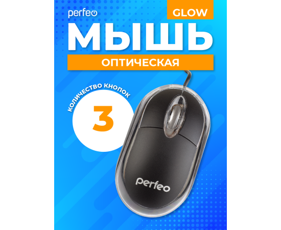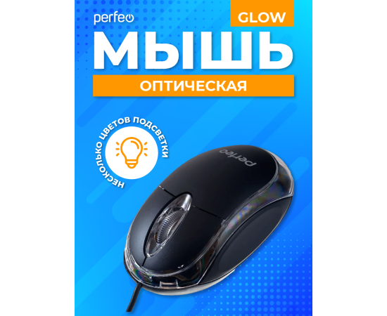 Оптическая мышь Perfeo "GLOW", подсветка, 3 кн, USB, чёрный, (Арт. PF_4435)
