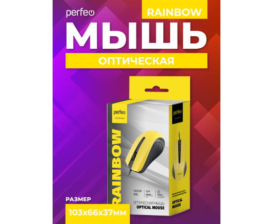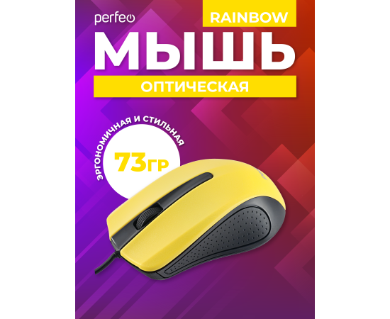 Оптическая мышь Perfeo "RAINBOW", 3 кн, USB, чёрный/жёлтый, (Арт. PF_3443)