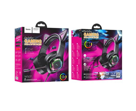 Наушники HOCO W107 Cute cat luminous cat ear gaming headphones phantom cat