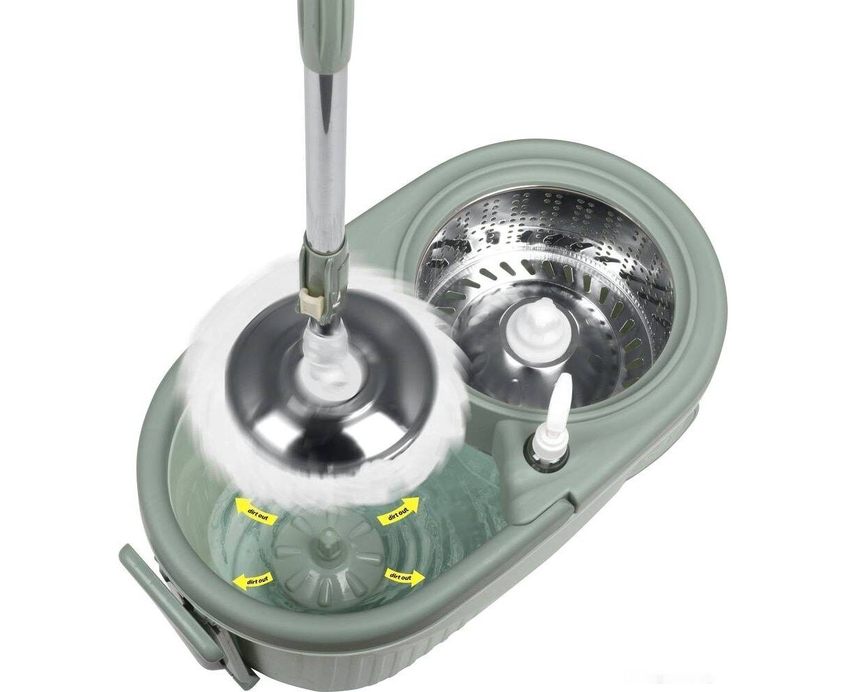 Набор для уборки с ведром и шваброй — вращающаяся швабра, предназначенная не только для мытья полов в помещениях.