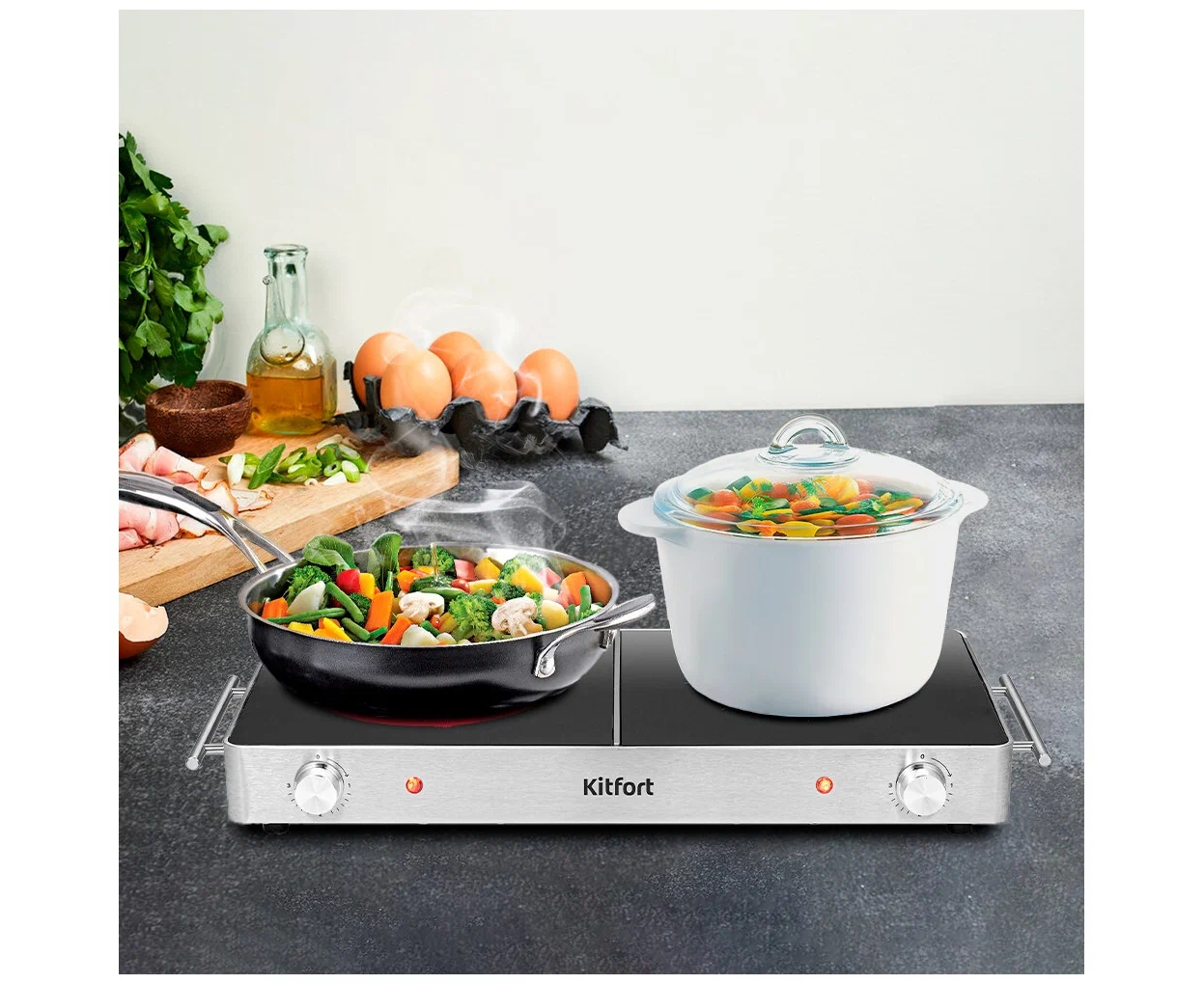 Настольная плита Kitfort КТ-150 серебристый