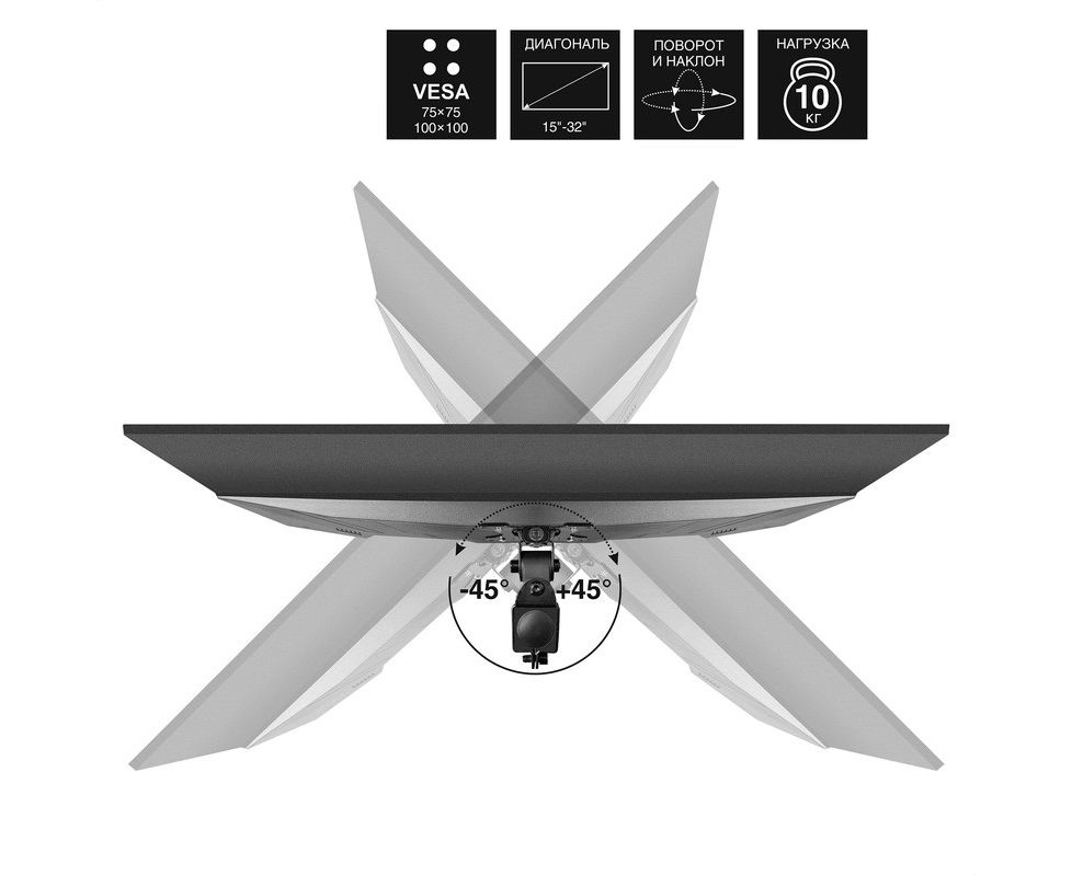 Стабильность: Подставка имеет прочную и устойчивую конструкцию, что обеспечивает надежное удержание монитора без риска опрокидывания.