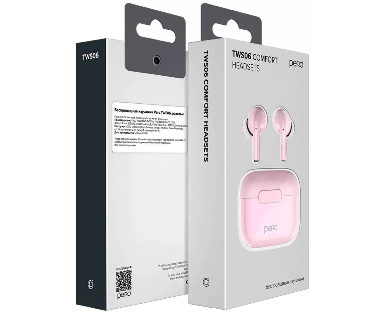 Наушники беспроводные PERO TWS06 Comfort (PTWS06CP) Pink