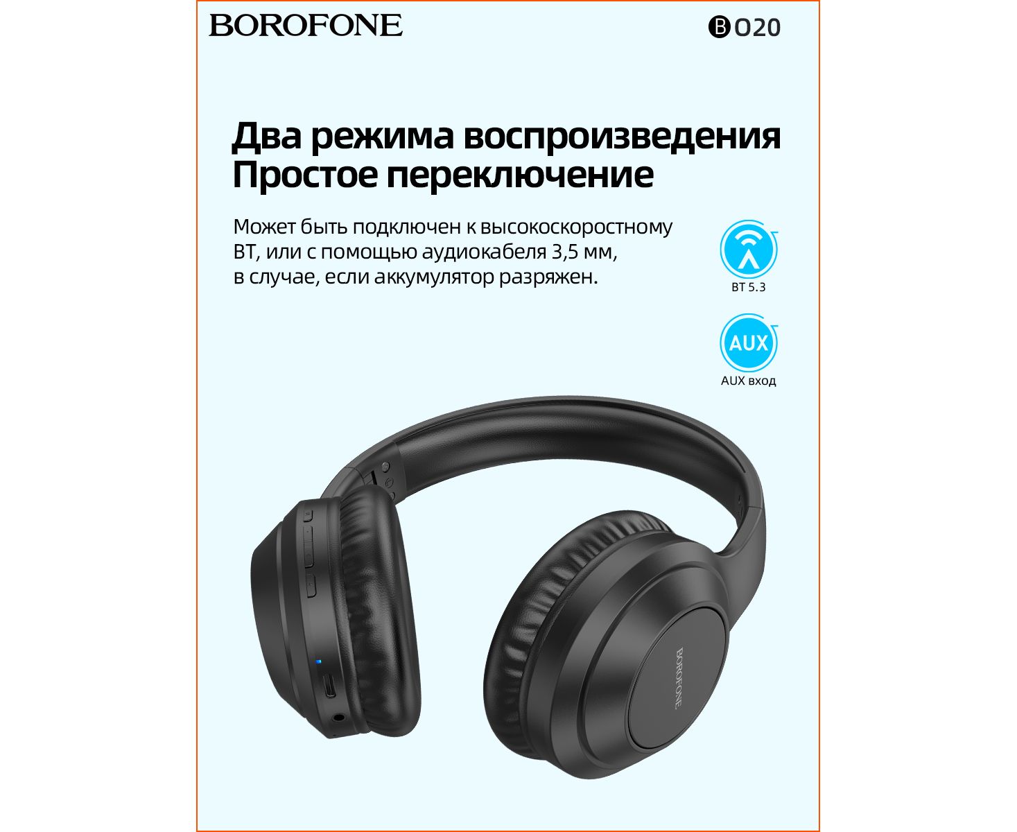 Наушники bluetooth полноразмерные BOROFONE BO20 Player BT (чёрный)