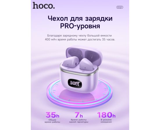 Наушники bluetooth HOCO EQ10 Harmony true wireless (фиолетовый)