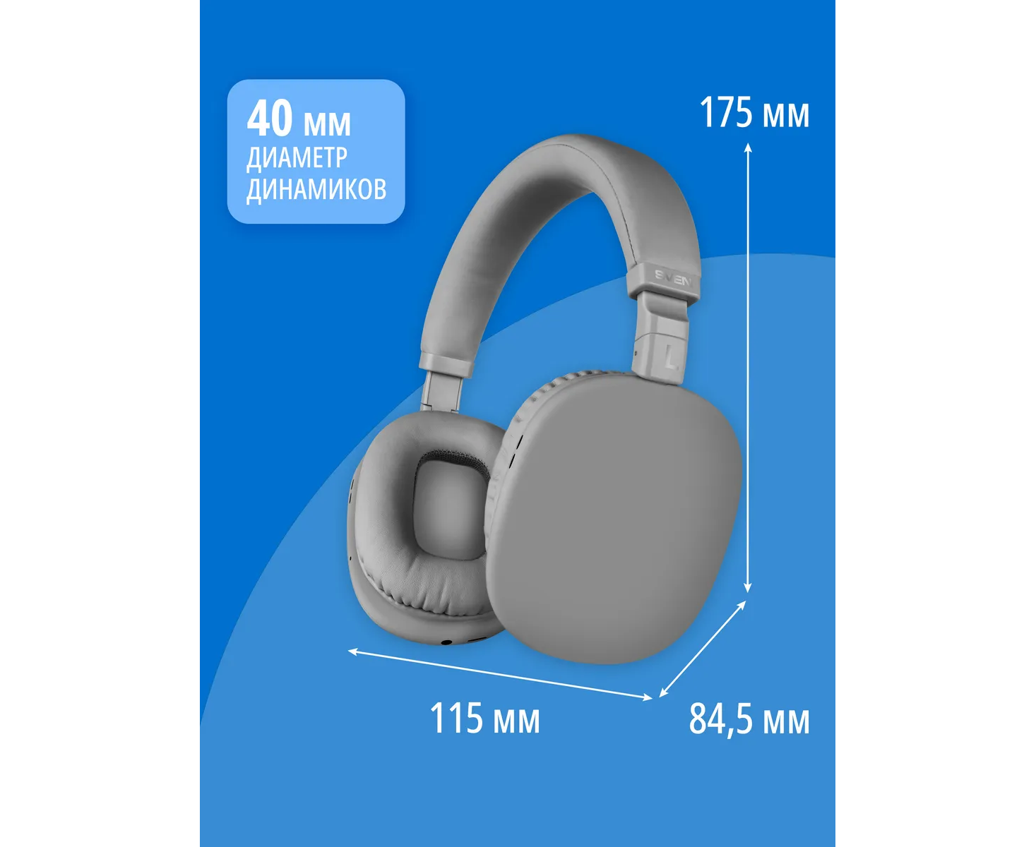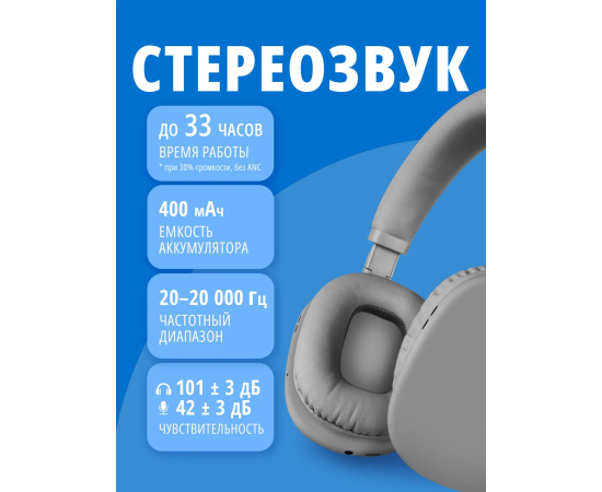 Наушники bluetooth полноразмерные с микрофоном SVEN AP-B325MV, серый