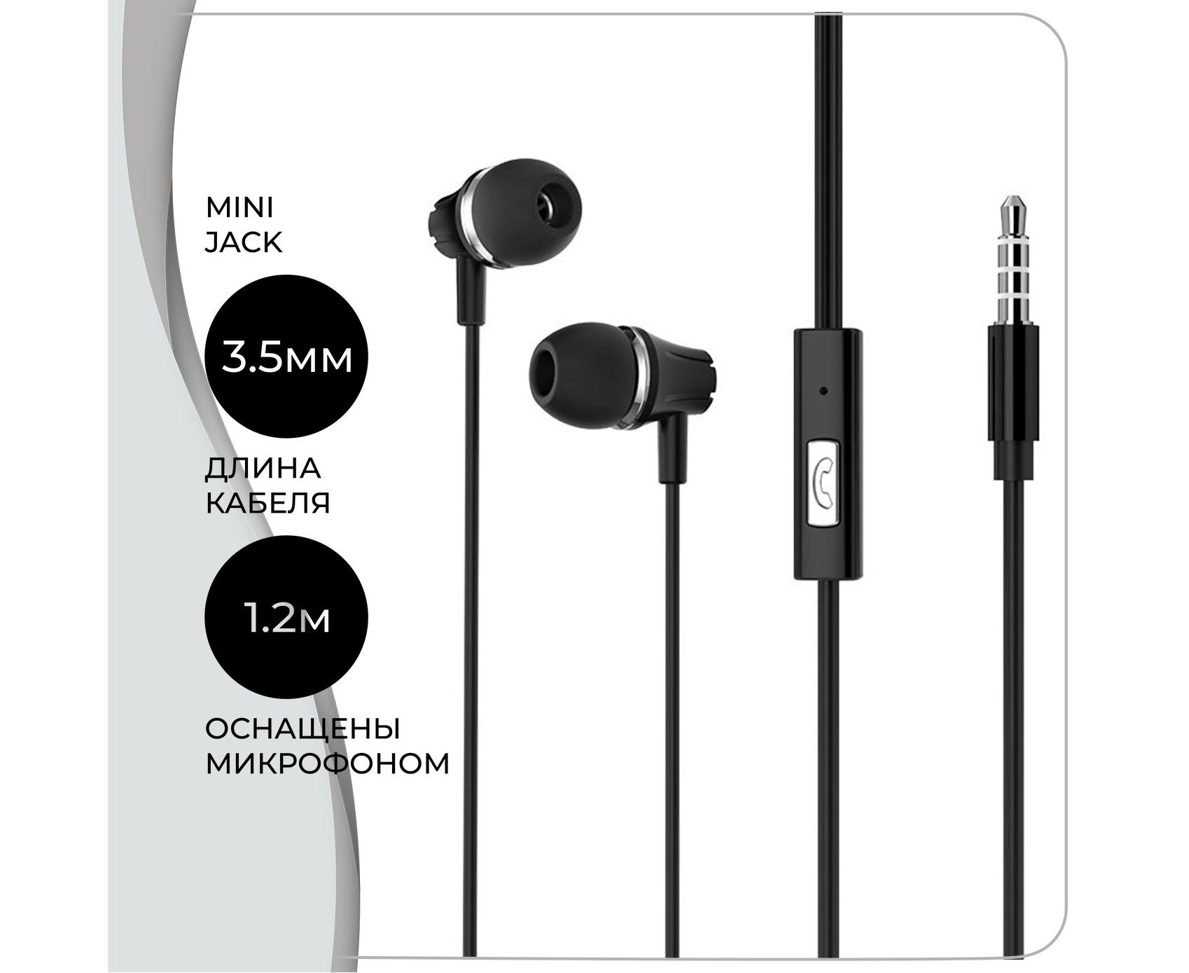 Наушники BOROFONE BM21 Graceful universal earphones with mic (чёрный) (акция)
