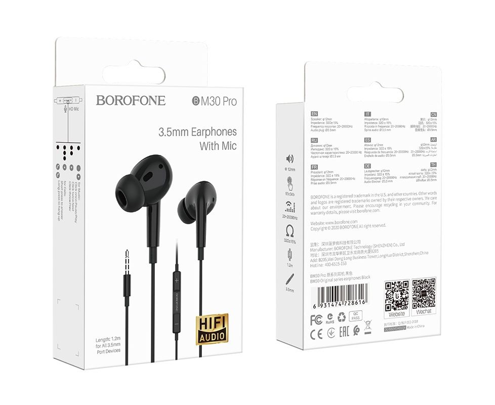 Наушники BOROFONE BM30 Pro Original series earphones (черный)
