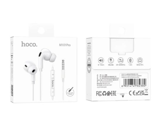 Наушники HOCO M101 Pro Crystal sound wire-controlled earphones with microphone (белый)