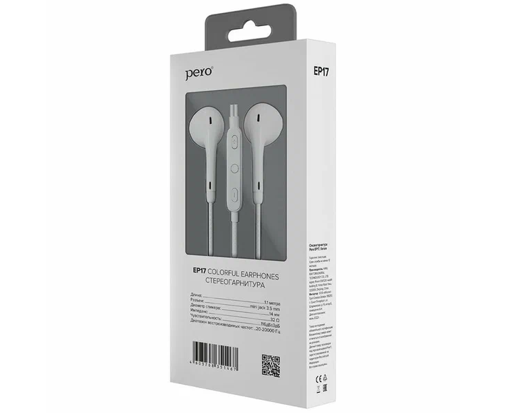 Наушники проводные PERO EP17WH белый
