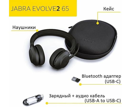 Наушники с микрофоном Jabra Evolve2 65 Link380c MS черный накладные BT оголовье (26599-999-899)
