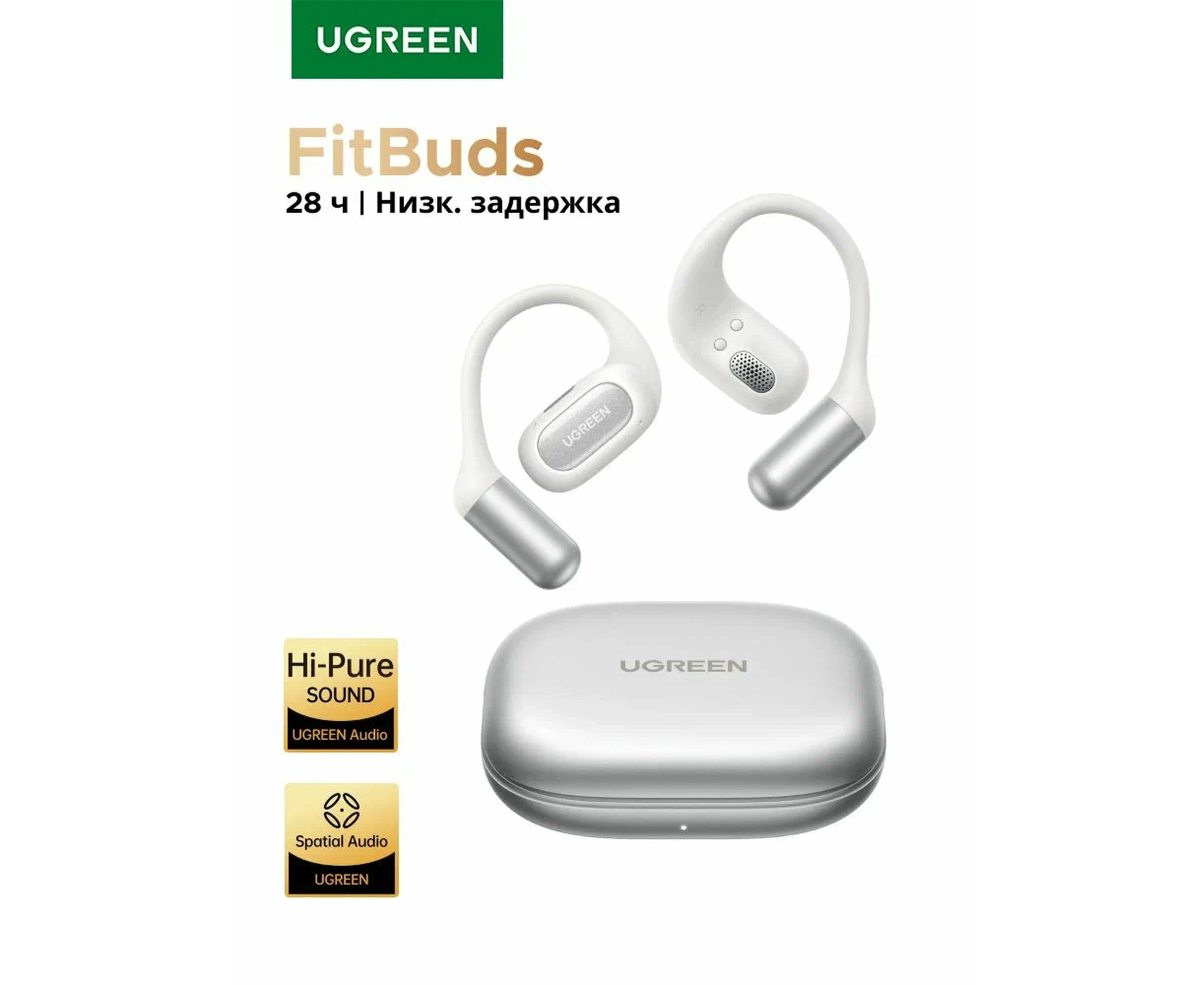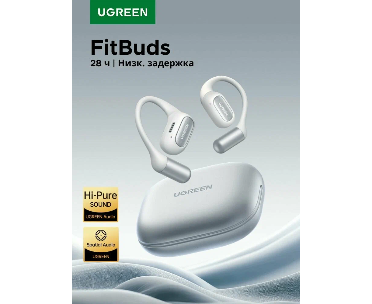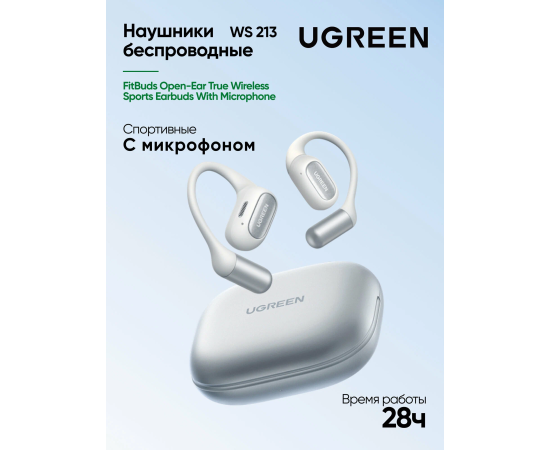 Наушники UGREEN WS213 (65387) FitBuds Open-Ear True Wireless Sports Earbuds With Microphone White