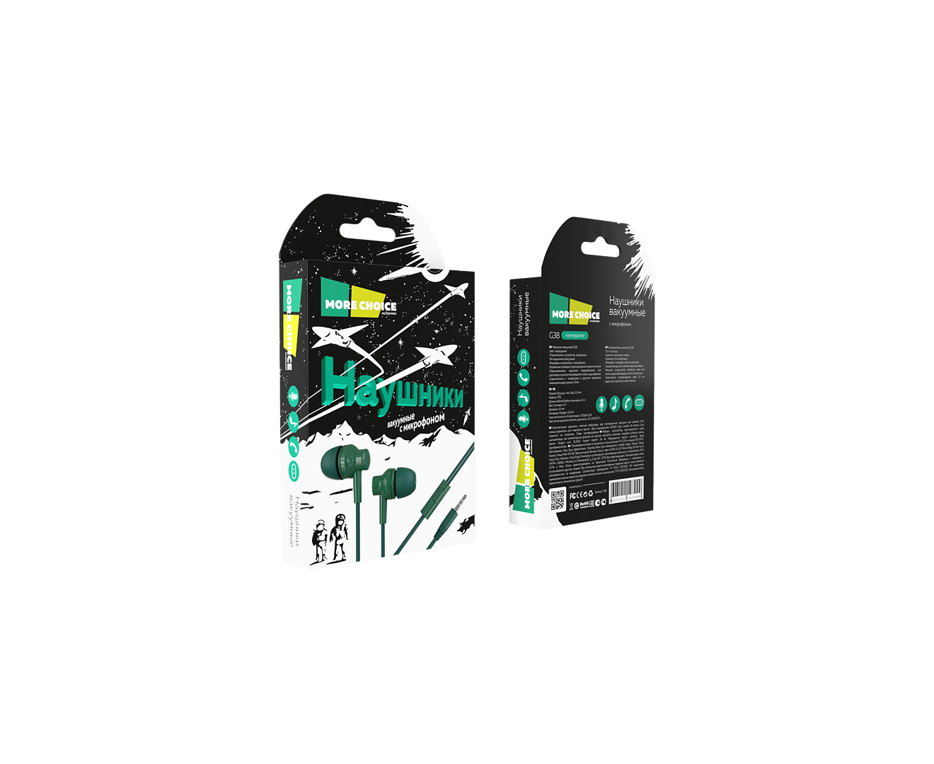 Наушники вакуумные AUX разъём с МК без рег.громкости длина 1.1м More Choice G38 (Emerald)