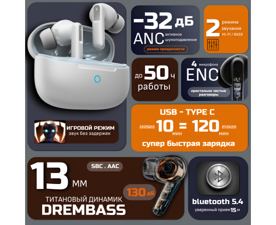 Наушники Venso VT-709 ANC белый