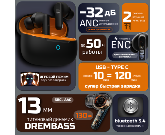 Наушники Venso VT-709 ANC черный