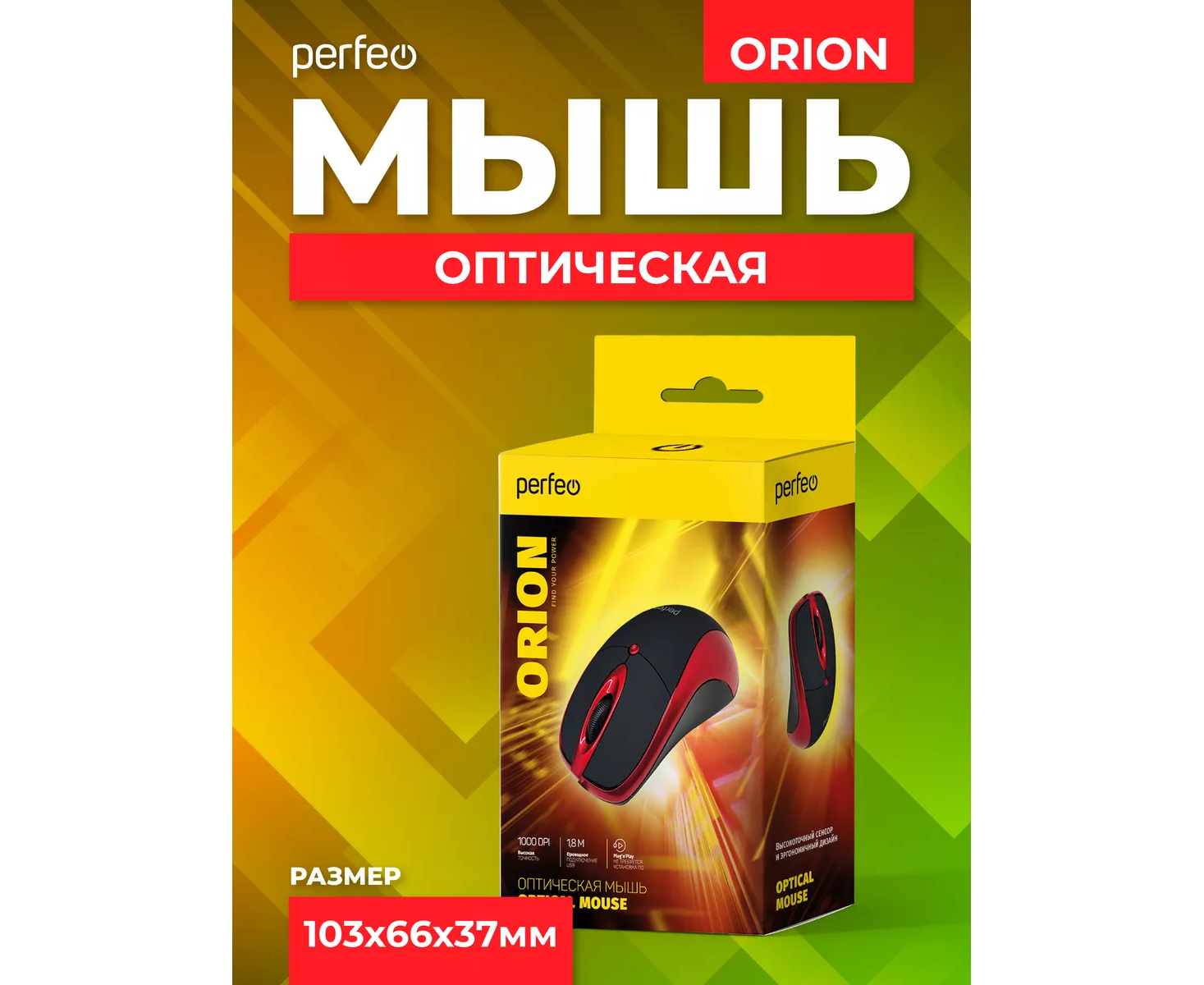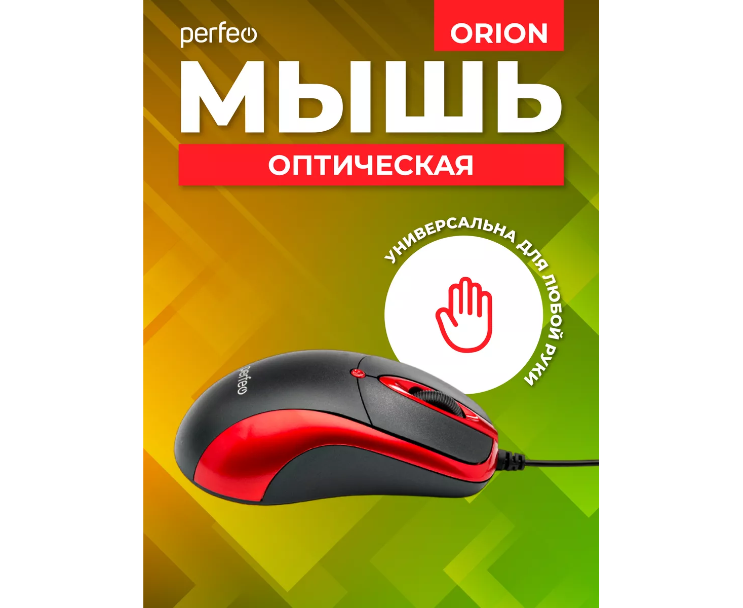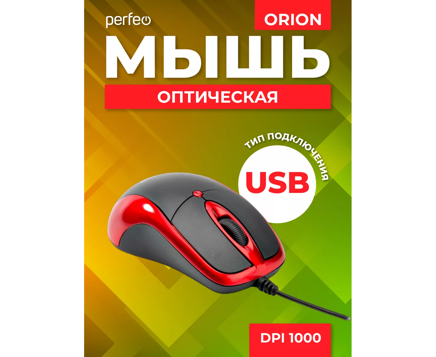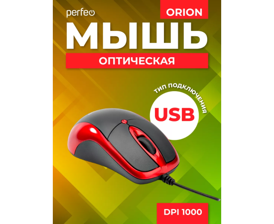 Оптическая мышь Perfeo "ORION", 3 кн, DPI 1000, USB, чёрный/красный, (Арт. PF_A4794)