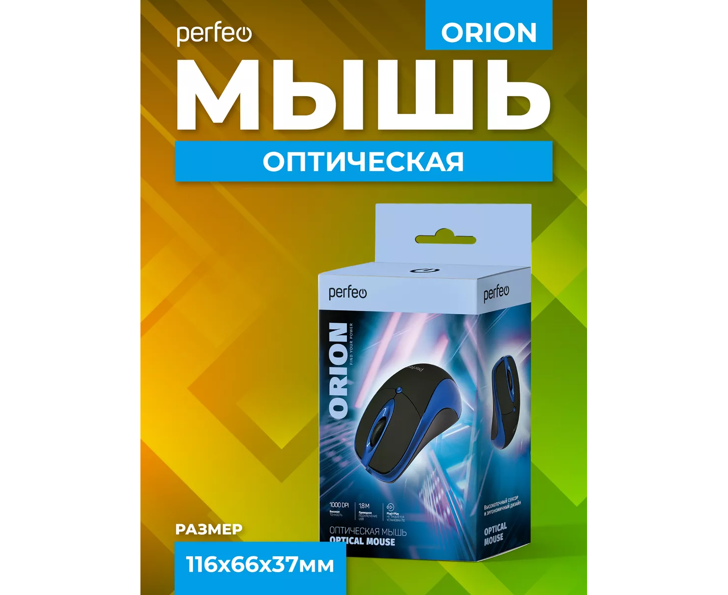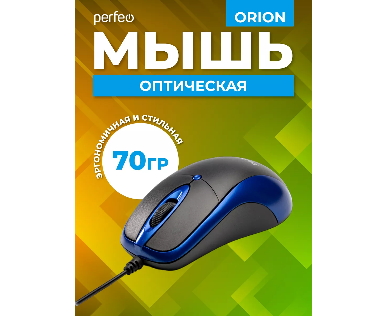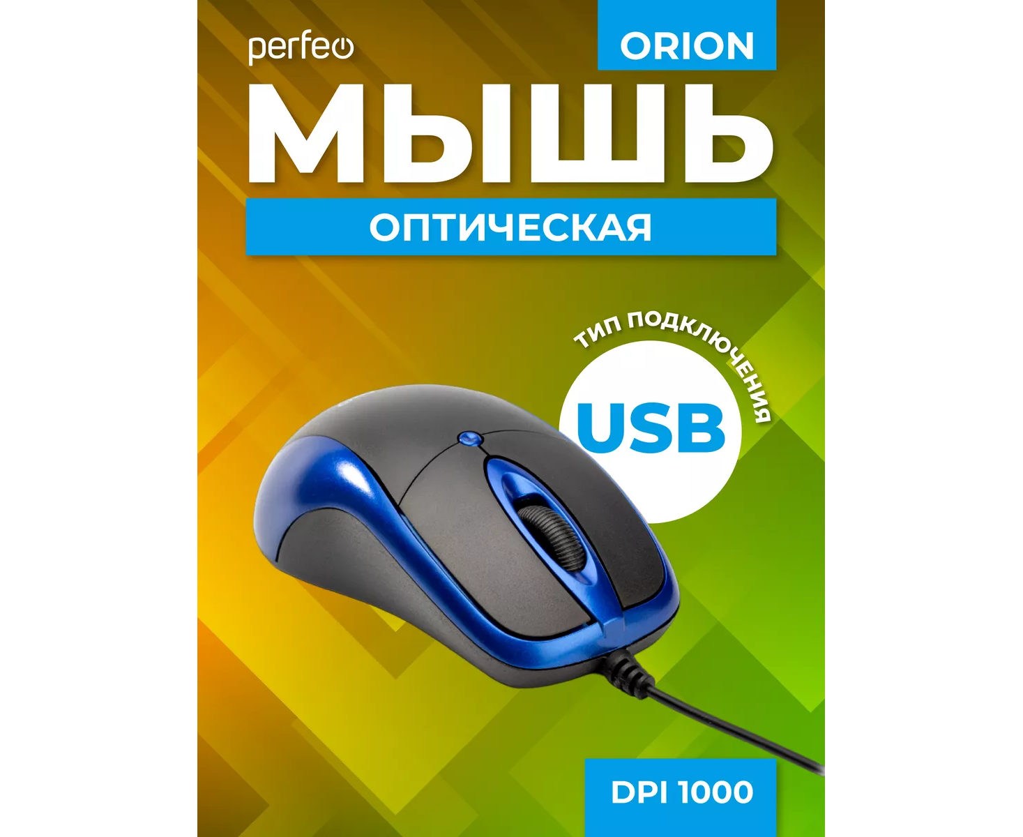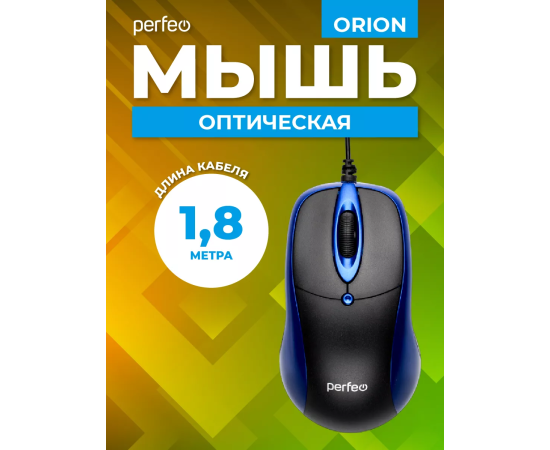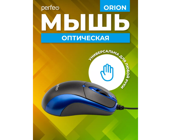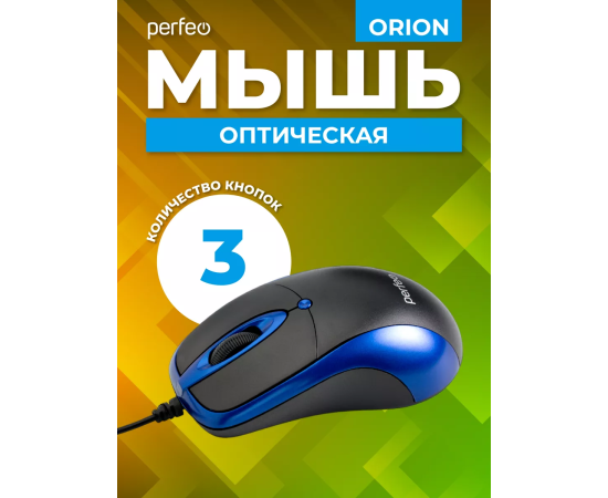 Оптическая мышь Perfeo "ORION", 3 кн, DPI 1000, USB, чёрный/синий, (Арт. PF_A4792)
