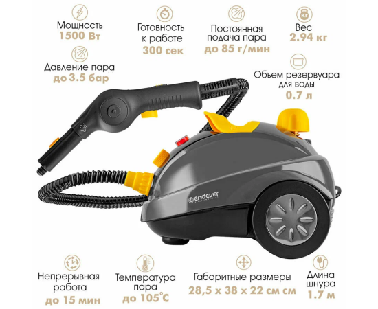 Отпариватель Endever Odyssey Q-808, темно-серый/желты
