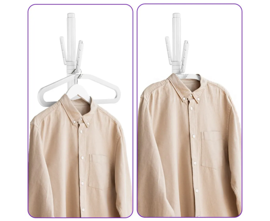 На вешалку отпаривателя можно повесить рубашки, брюки и другую одежду. Также одежду можно подвесить на крючок отпаривателя, чтобы не перевешивать её с вешалок, на которых она хранится в шкафу.