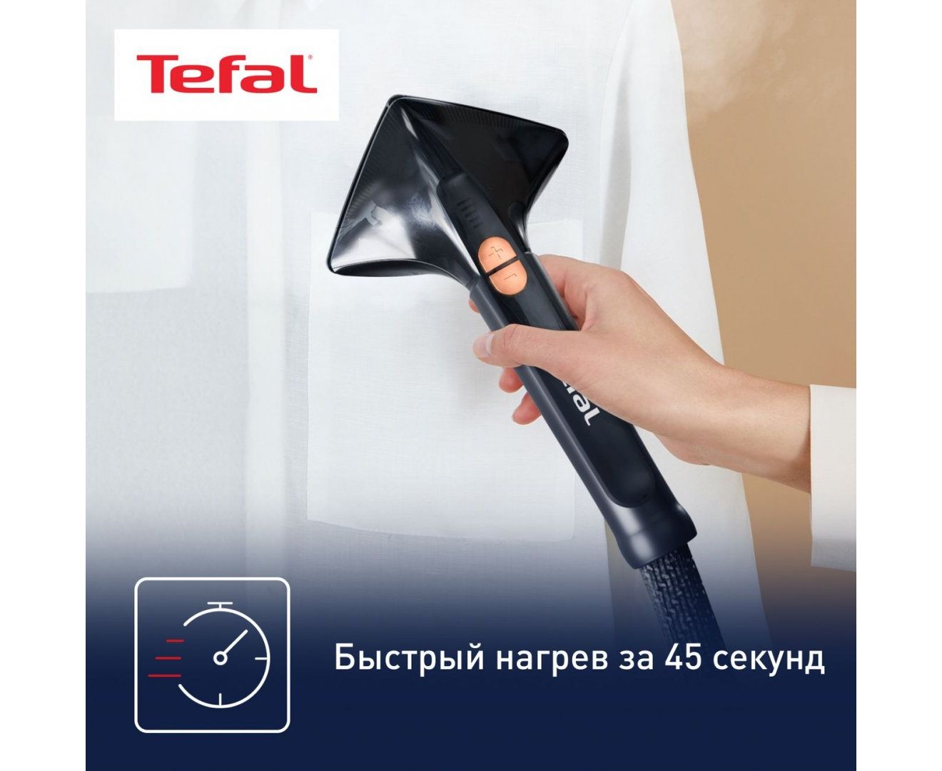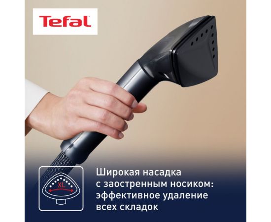 Вертикальный отпариватель Tefal IT8480E1 поддерживает пять режимов. Это позволяет выбрать оптимальные параметры подачи пара в зависимости от особенностей ткани. Сила пара регулируется до 42 г/мин посредством переключателей, расположенных на ручке. Широкая насадка Delta помогает устранять складки даже в труднодоступных местах. Вертикальная поддержка Press & Steam создает дополнительный упор. Одежда не отклоняется под струей пара, что улучшает результат.