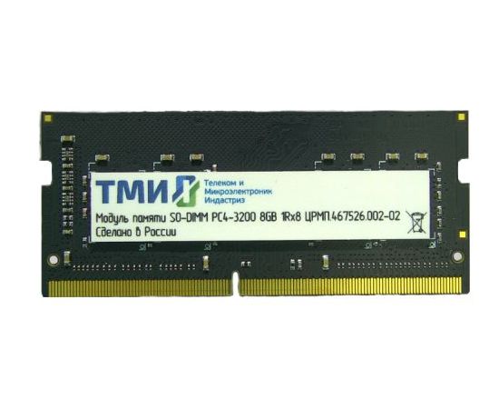 ОЗУ ТМИ (ЦРМП.467526.002-02) SO-DIMM 8ГБ DDR4-3200 (PC4-25600), 1Rx8, C22, 1,2V consumer memory, 1y wty МПТ