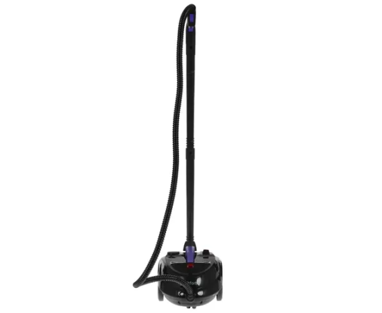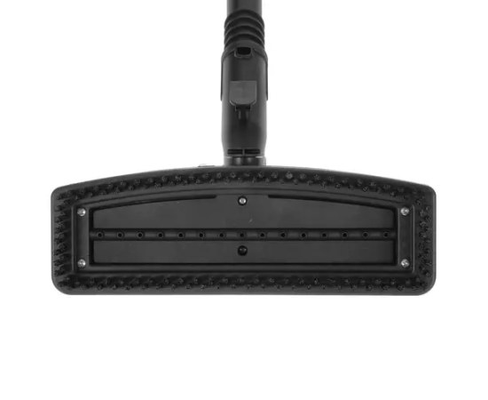 Пароочиститель выполнен в черном корпусе и и содержит два больших колеса для легкого перемещения. Прибор мощностью 2000 Вт станет заменой дезинфектора, паровой швабры, отпаривателя, стеклоочистителя благодаря наличию множества насадок в комплекте. Для очистки кафеля, зеркал и окон используется скребок. При помощи струйной насадки устройство эффективно очищает щели, плинтусы, углы. Стойкие загрязнения не устоят перед щетками. Предусмотрена насадка, которая позволяет использовать пароочиститель для отпаривания штор, одежды мягкой мебели.