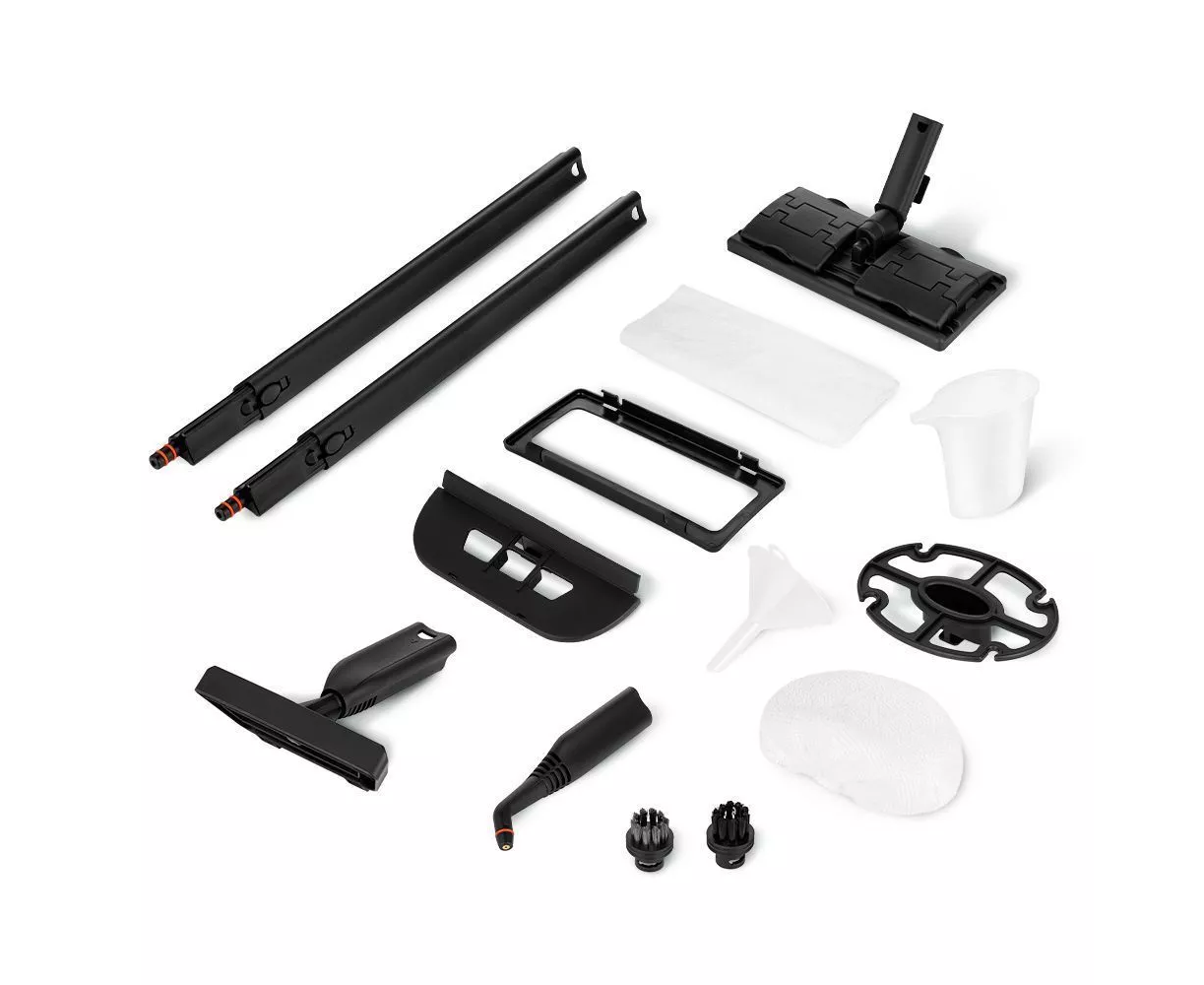 Для эффективной очистки и дезинфекции в комплекте идут 7 насадок и 2 тряпочки. Длина шнура 3,7 м. Большое количество насадок в комплекте поможет очистить труднодоступные или сильнозагрязненные поверхности без использования химии.