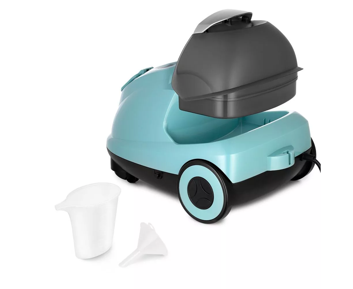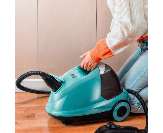 На корпусе пароочистителя есть ручка для переноски. Колёса позволяют с лёгкостью перемещать пароочиститель, не поднимая его. КТ-9187 предназначен для уборки полов и поверхностей, находящихся как внутри, так и вне помещений.
