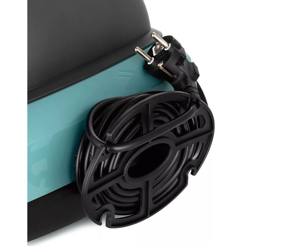 Длина шнура 3,7 м. Излишки шнура питания вы всегда можете намотать на держатель, который подсоединяется к обратной стороне прибора.