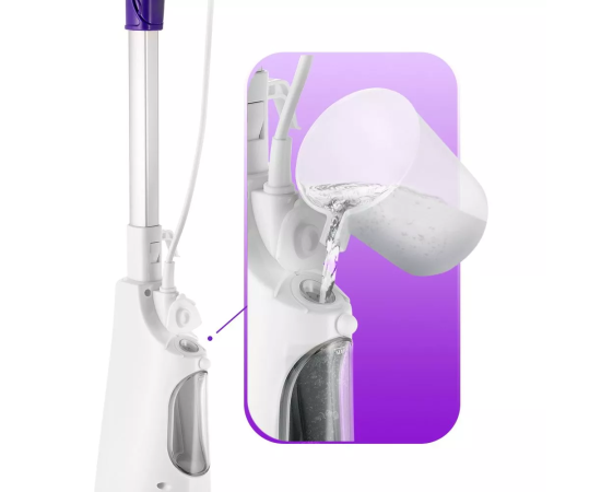 Швабра оснащена несъёмным резервуаром для воды ёмкостью 450 мл, что позволяет производить непрерывную уборку в течение 25 минут. Мерным стаканчиком удобно заливать воду в резервуар. Когда устройство готово к работе, индикатор горит непрерывно.