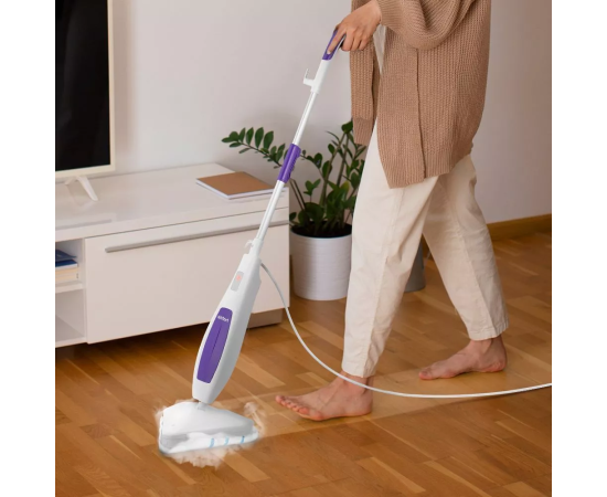 Паровая швабра КТ-1056 — универсальное устройство, которое поможет избавиться от пыли и грязи с помощью мощной струи пара, а также продезинфицирует обрабатываемую поверхность. Высокая температура способствует процессу очистки любых загрязнений.