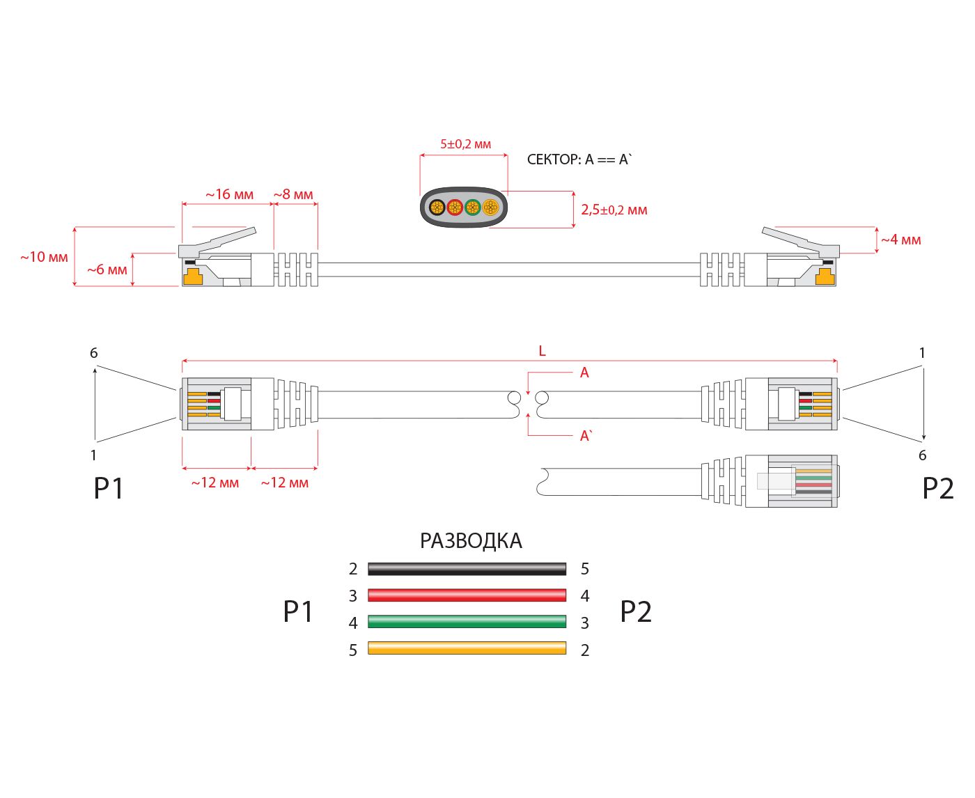 Диаметр кабеля: 2,4 х 4,8 мм