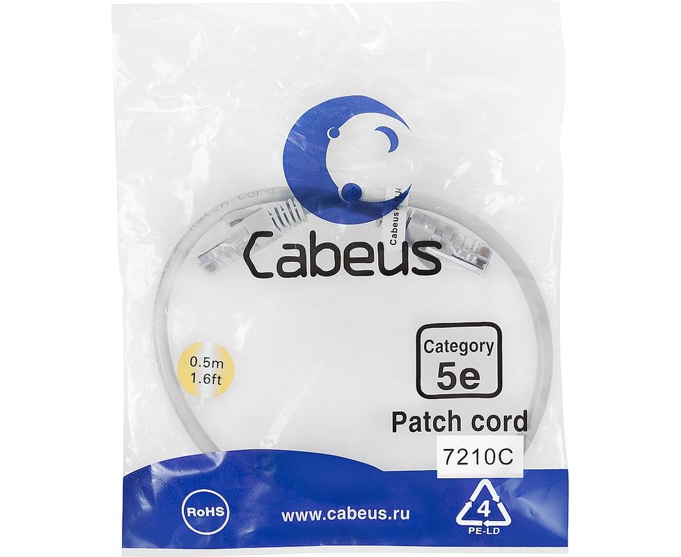 Cabeus PC-UTP-RJ45-Cat.5e-0.5m Патч-корд UTP, категория 5e, 0.5 м, неэкранированный, серый