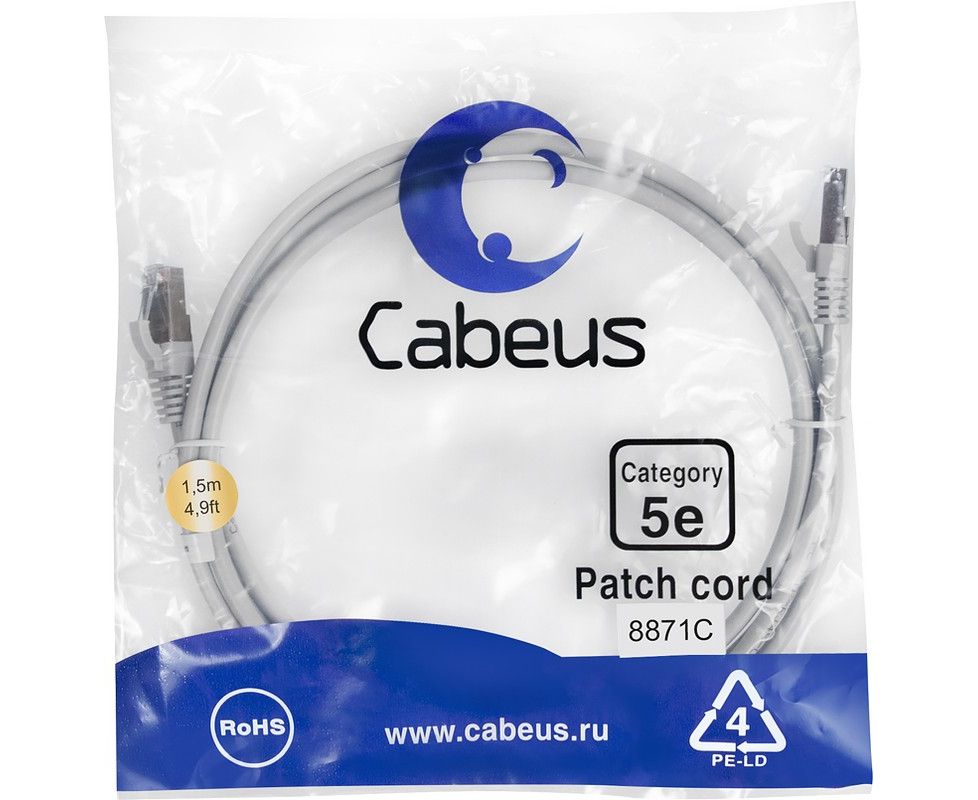 Патч-корд Cabeus PC-UTP-RJ45-CAT.5E-1.5M-LSZH неэкранированный, серый