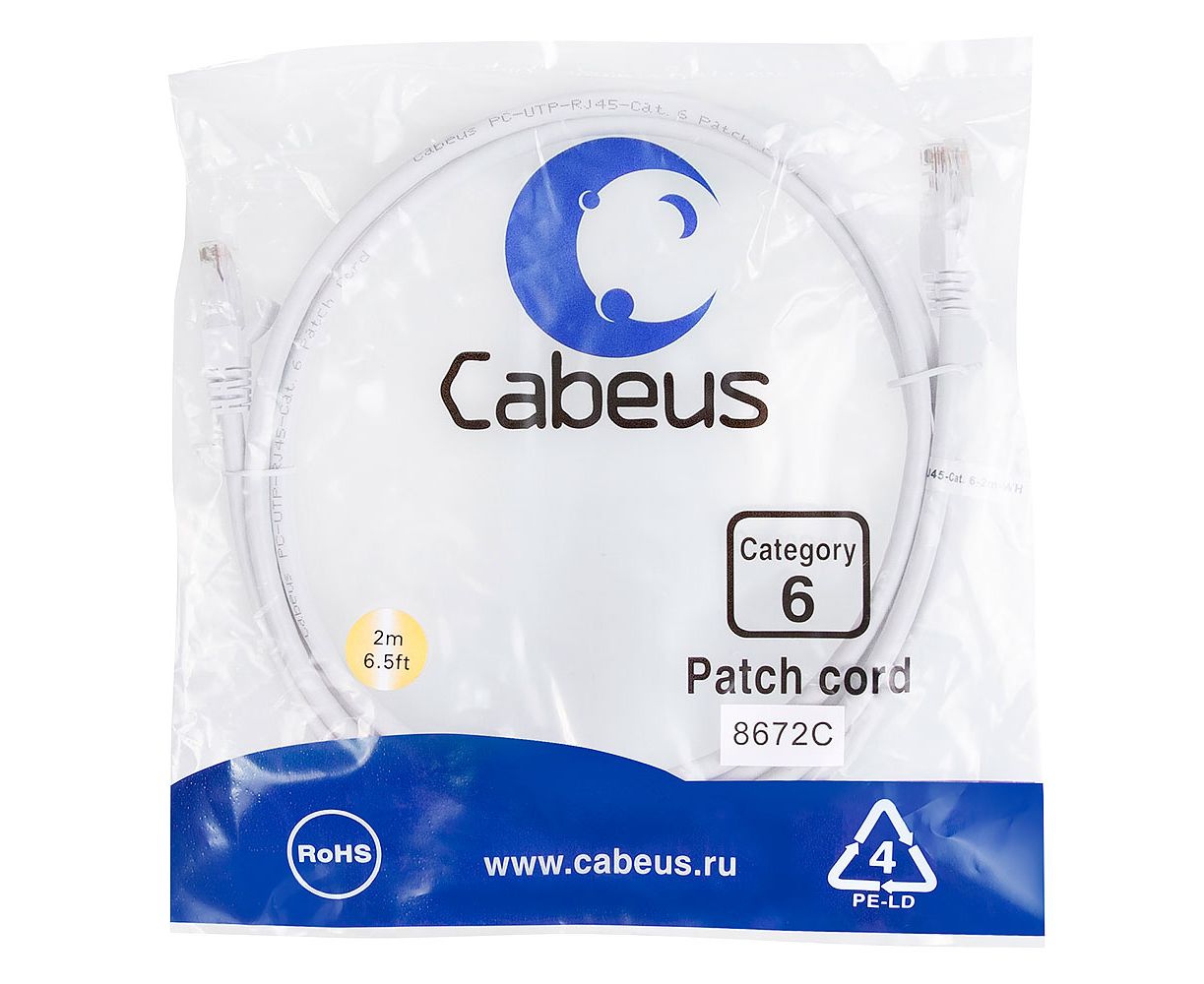 Патч-корд Cabeus PC-UTP-RJ45-Cat.6-2m-WH неэкранированный, белый