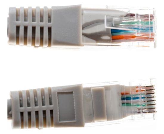 С обеих сторон шнура располагаются штекеры разъема RJ-45 (8P8C);