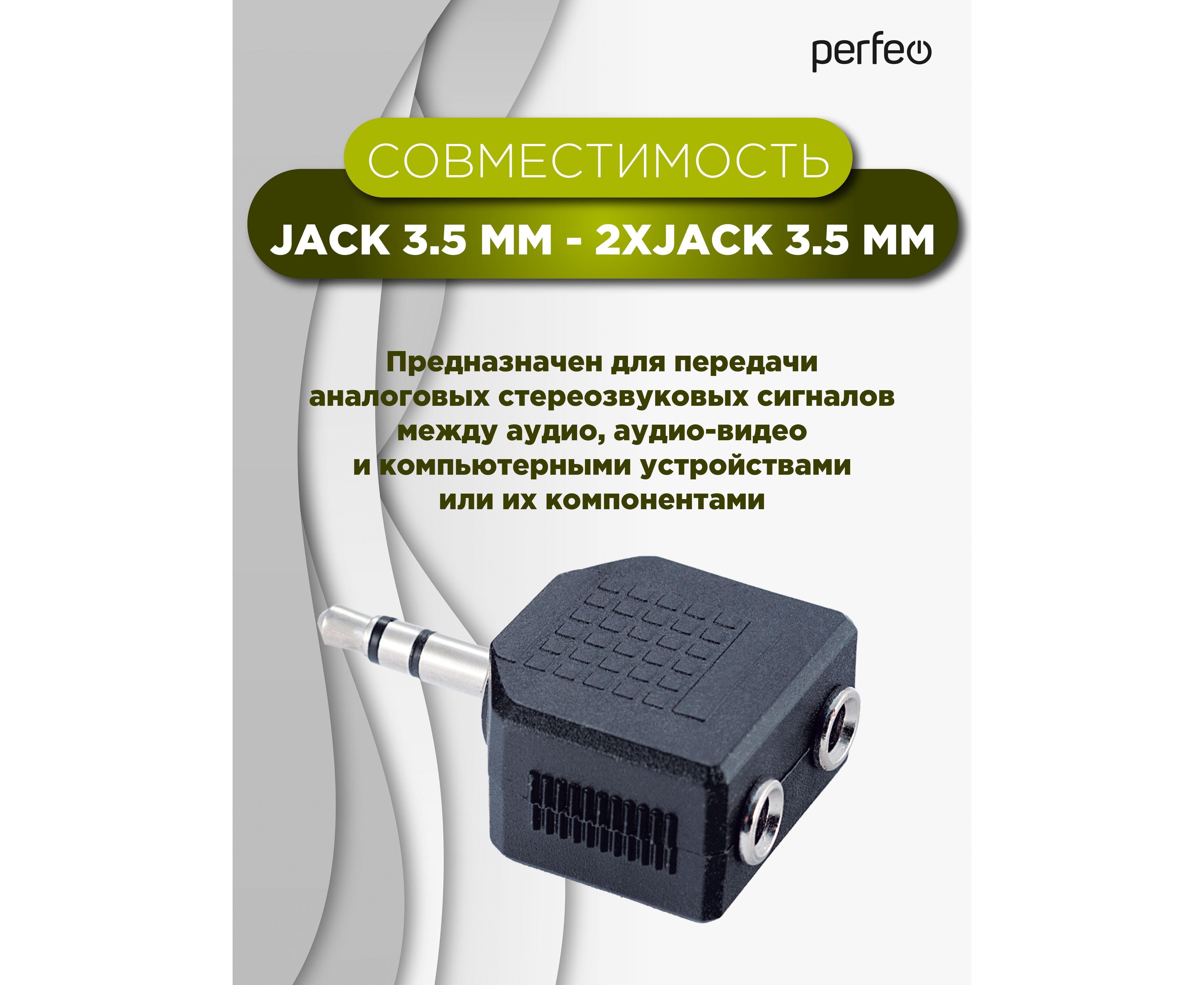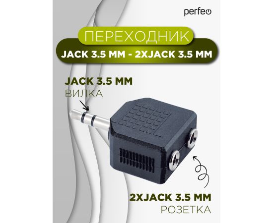 Переходник PERFEO Jack 3.5 мм вилка - 2xJack 3.5 мм розетка, стерео-аудио (A7008)