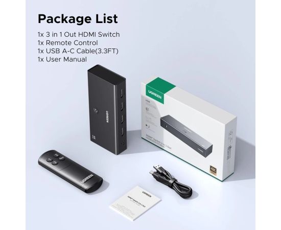 Переключатель UGREEN AW504 (55857) HDMI Switch 3 In 1 Out 4K@60Hz Black