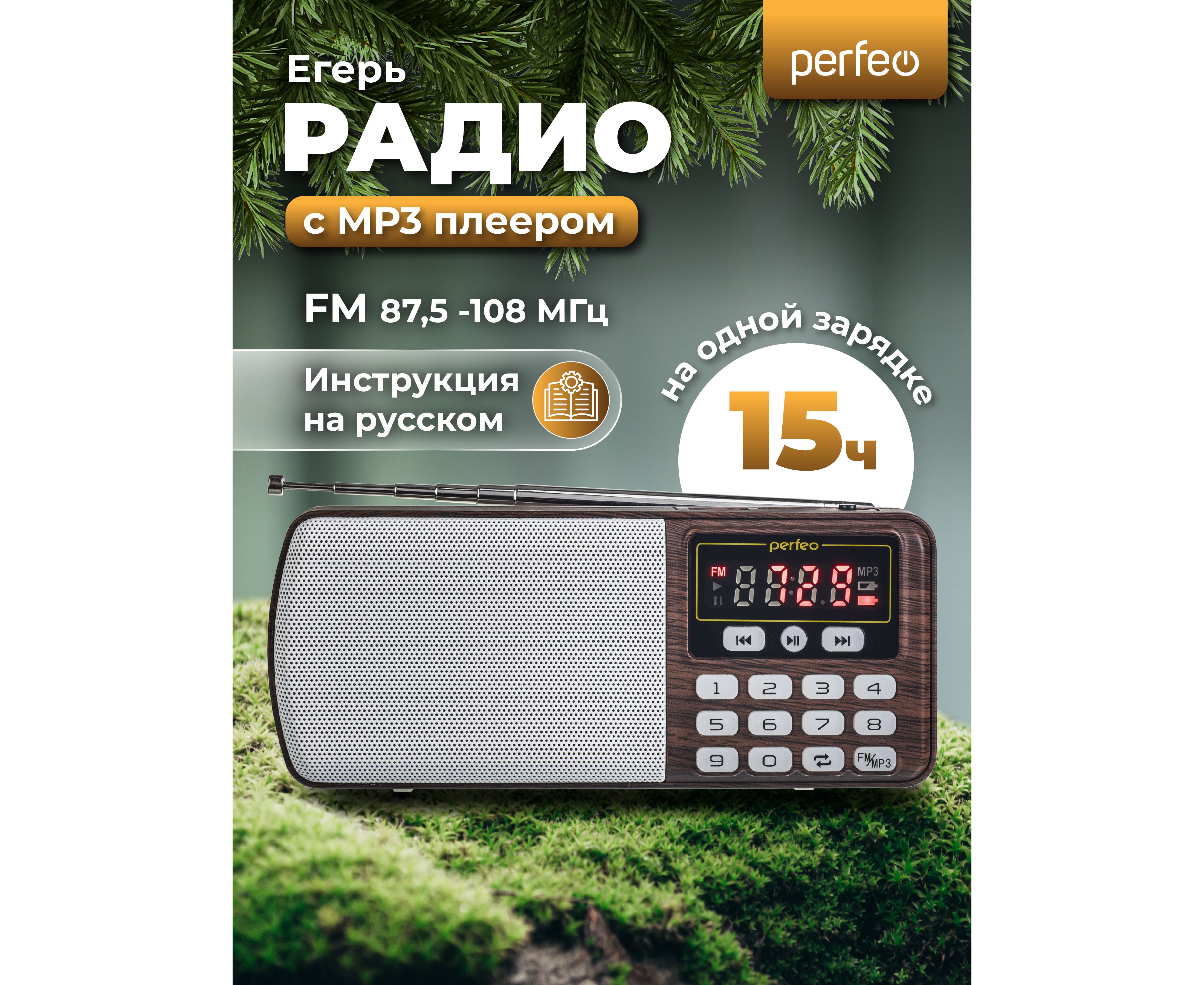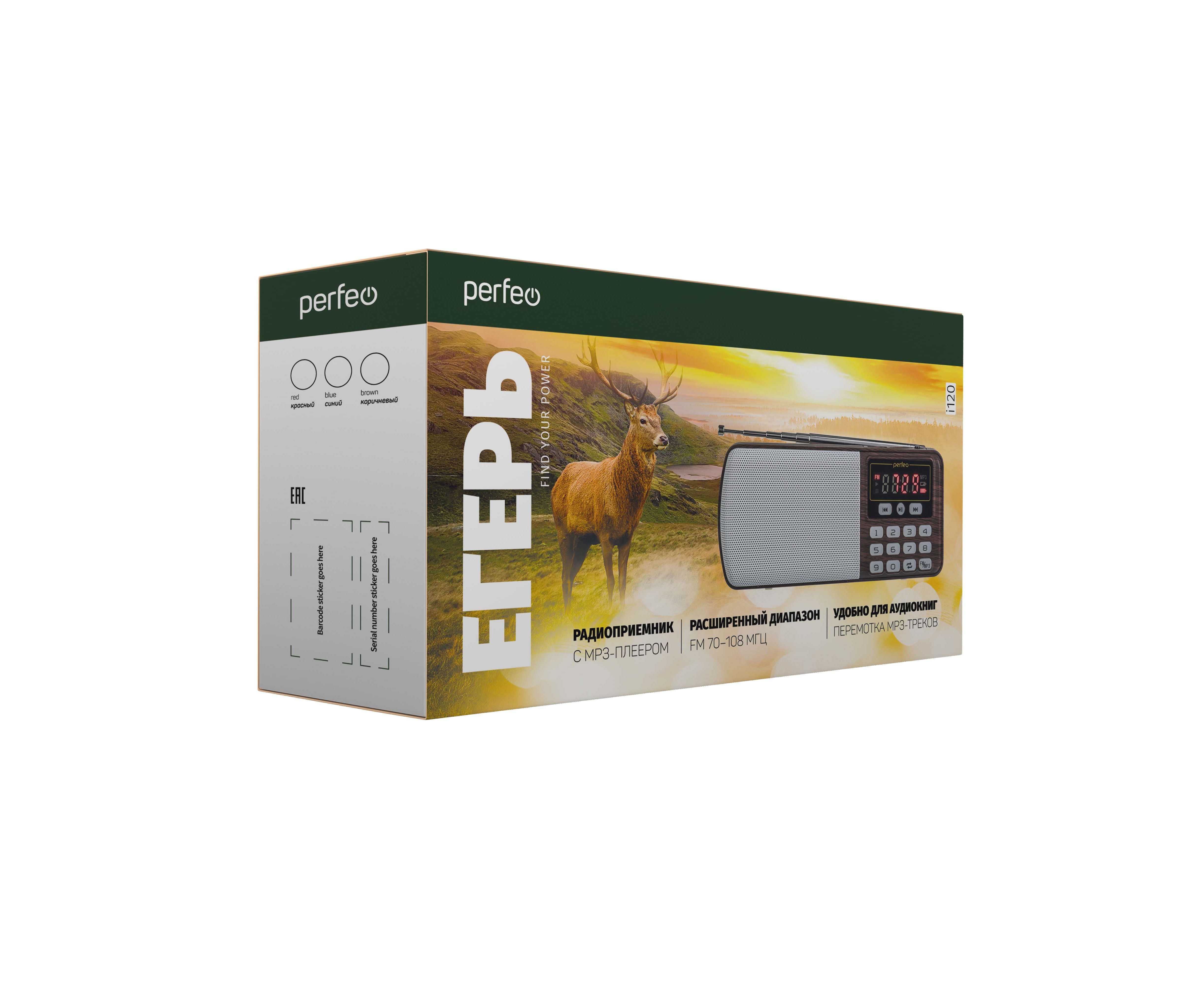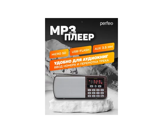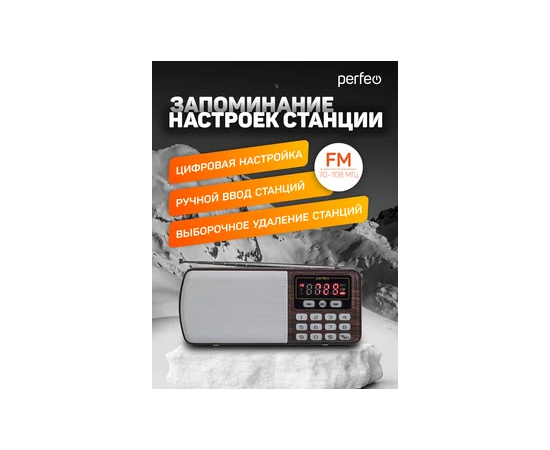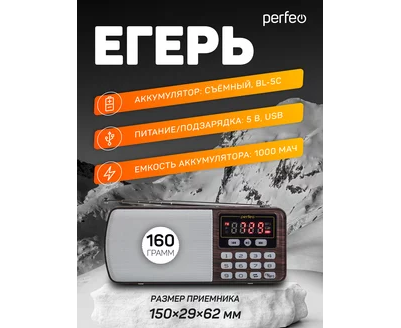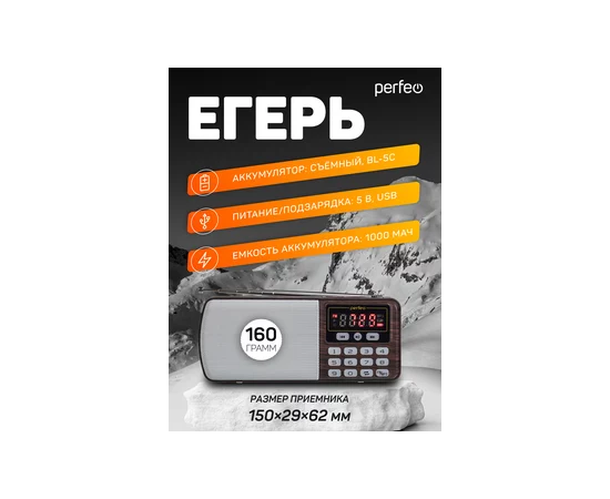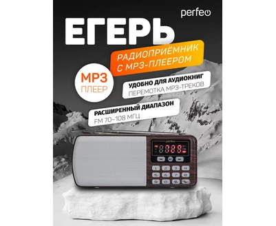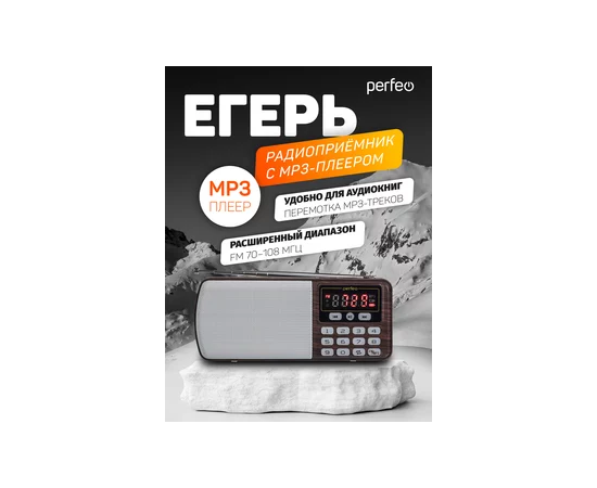 Цифровой радиоприемник Perfeo ЕГЕРЬ FM+ 70-108МГц/ MP3/ питание USB или BL5C/ Коричневый (i120-BK)